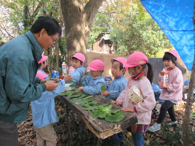 子どもたちは、園庭や北本みなみ幼稚園施設の自然教育園に出かけると、様々な発見に目を輝かせ、「なぜだろう。」「どうしてだろう。」と頭を働かせます。将来、知識や知恵を生み出すためにも、みなみ絵本のこども園では幼児期に多くの自然と触れ合い、美しいものを美しいと感じたり、未知なものに感激したりと豊かな感性を育むことを大切にしています。